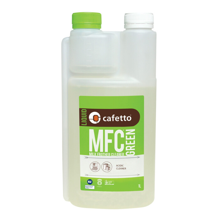 MFC Green bevat biologisch afbreekbare wasmiddelen en is afgeleid van natuurlijke zuren. Zorgt voor een uitstekende verwijdering van melkvet en ontkalking van automatische melkopschuimers. MFC Green laat ook geen spoor van geur achter na het spoelen.